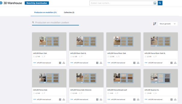 SketchUp is in Nederland het meest gebruikte ontwerpprogramma door interieurstylisten. Het wordt zelfs gebruikt in de opleiding voor interieuradviseurs en -stylisten, waardoor het een grote schare professionele gebruikers kent. Alle mFLOR vloeren, inclusief alle varianten, zijn te downloaden vanuit de SketchUp 3D warehouse en daarna direct te gebruiken in SketchUp.