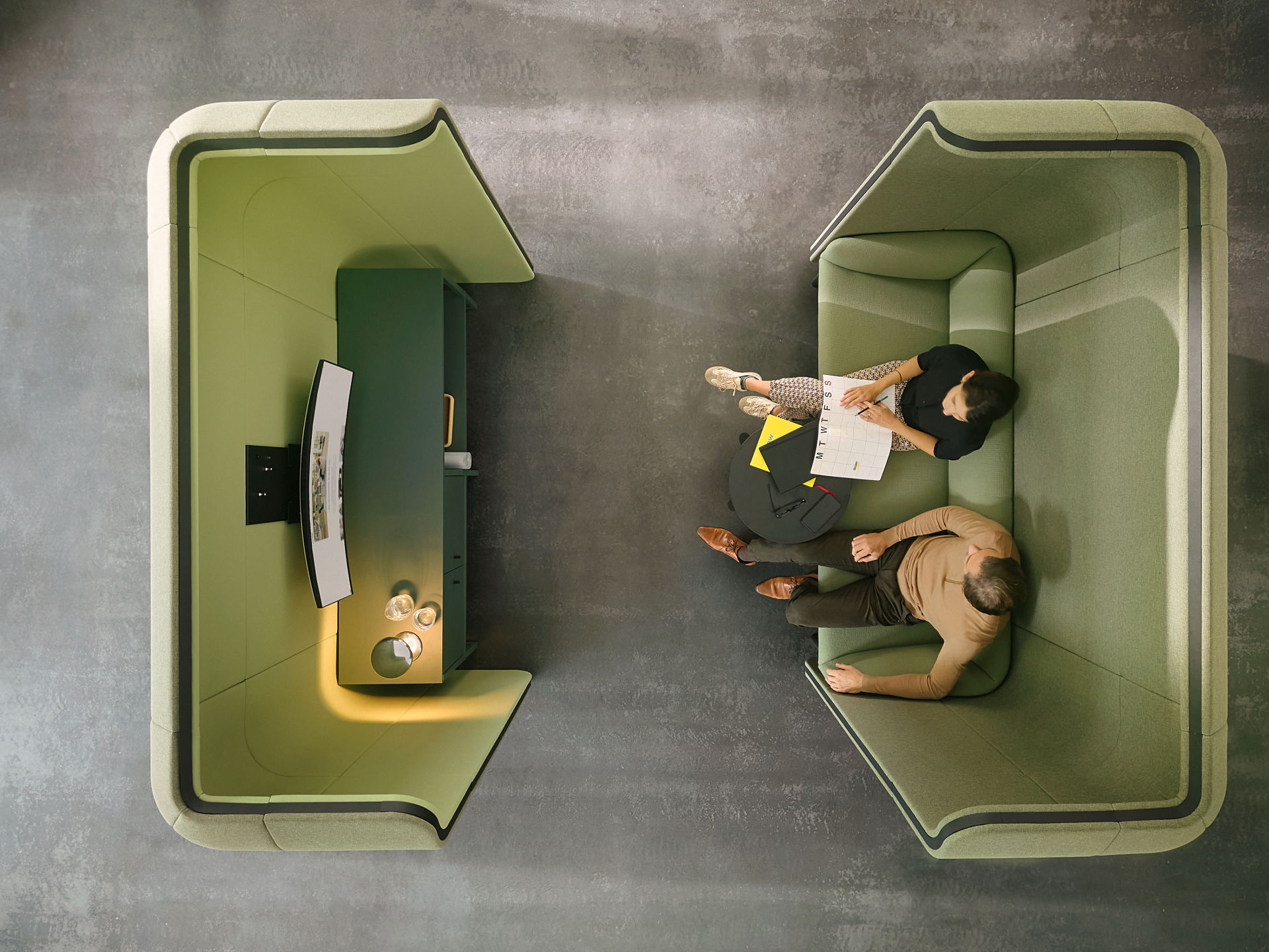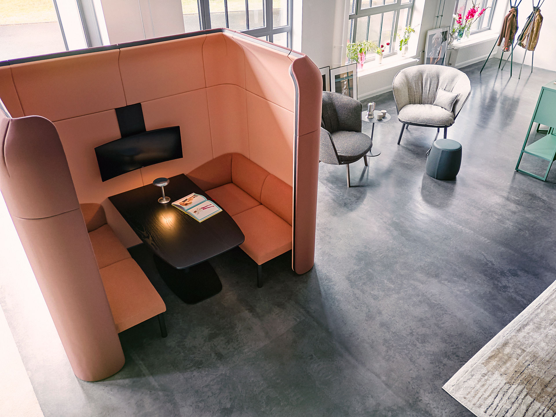 Optionele modules en een breed scala aan stoffen maken het mogelijk om ruimtes te creëren die gericht zijn op concentratie, maar ook informele ontmoetingsplekken voor samenwerking en inspiratie bieden.