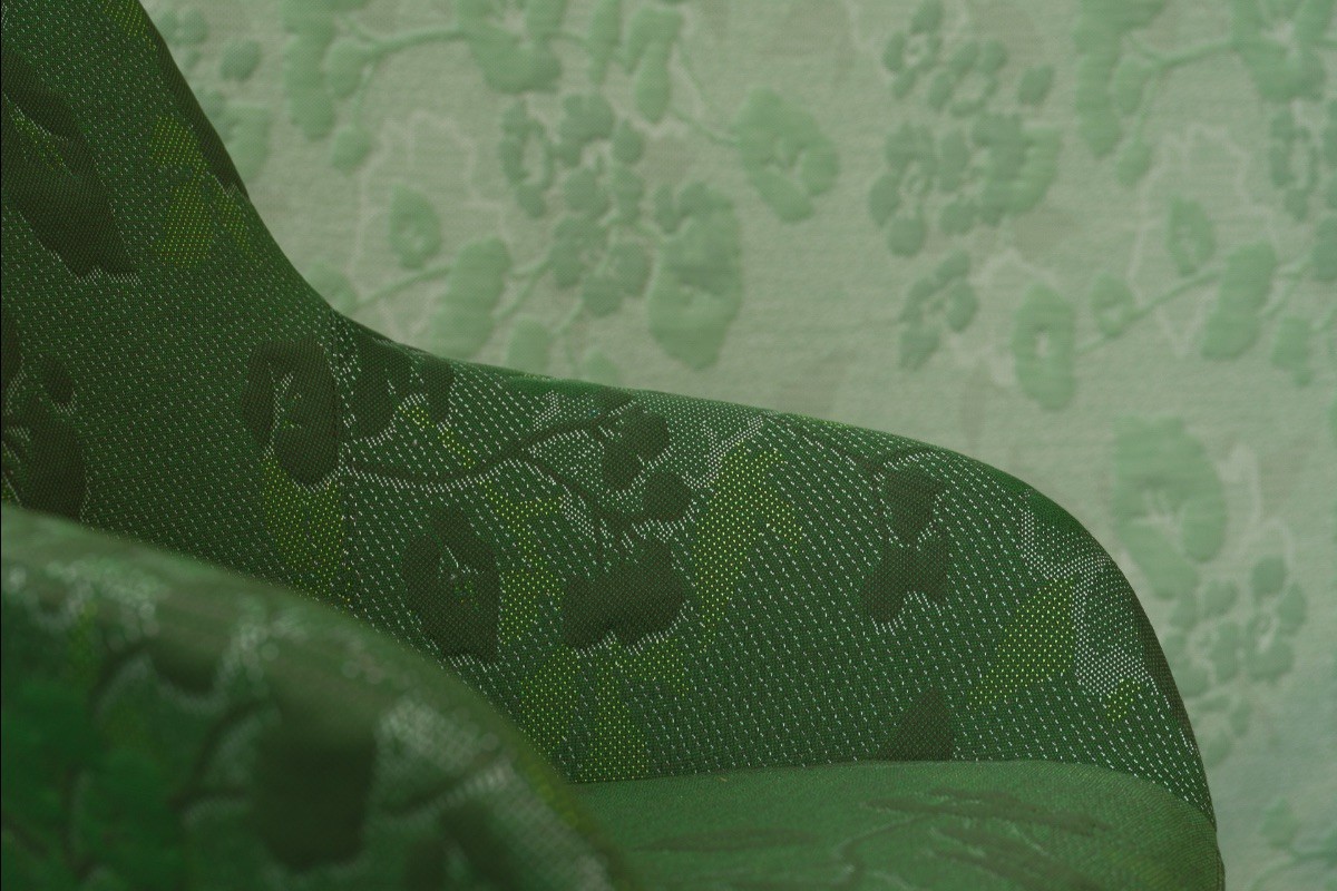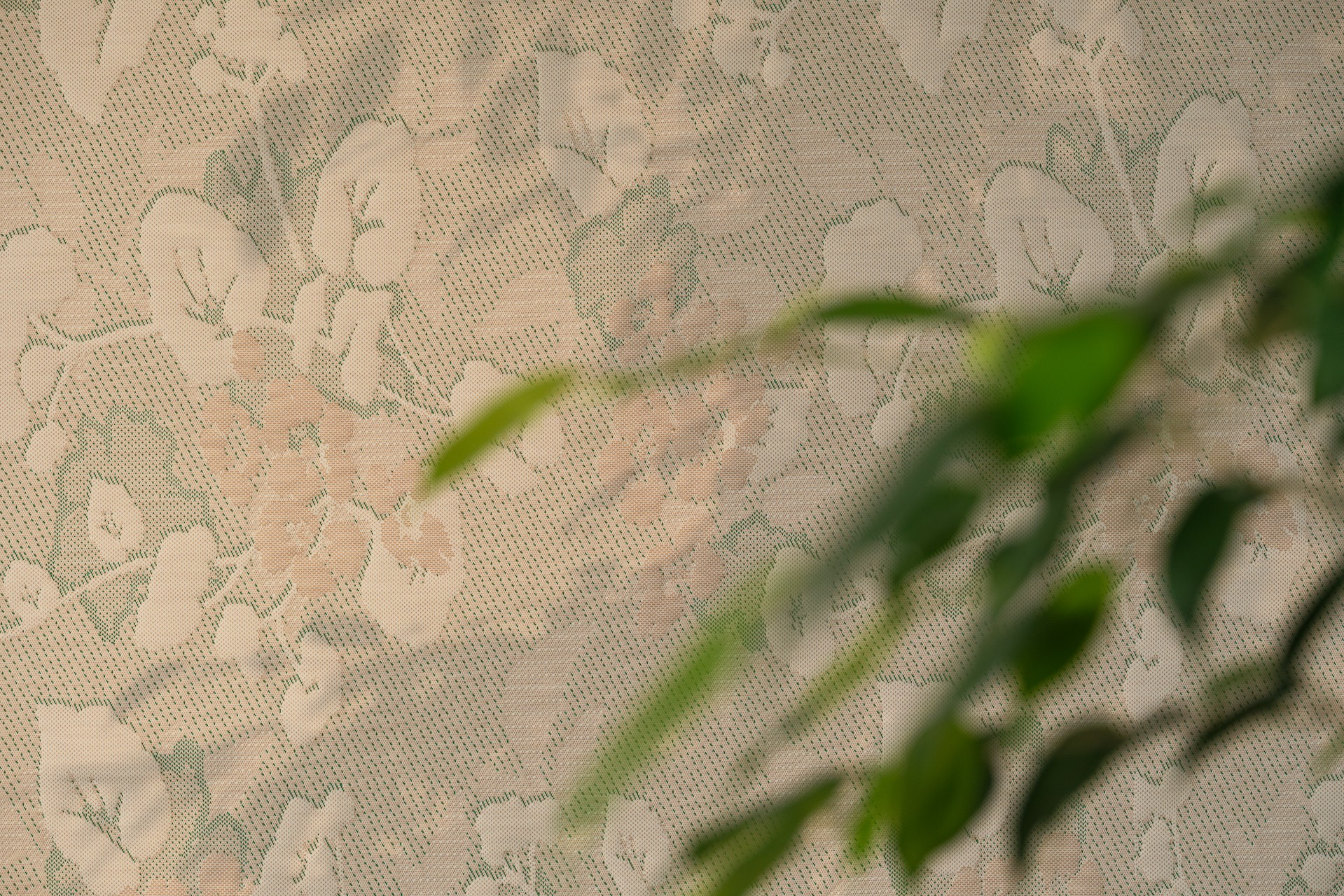 Het florale motief ontwikkelde zich organisch, geïnspireerd door flora en fauna, elementen die het welzijn ondersteunen. In combinatie met echte planten en natuurlijke materialen verzacht het textiel ruimtes en versterkt het comfort en betekenis.