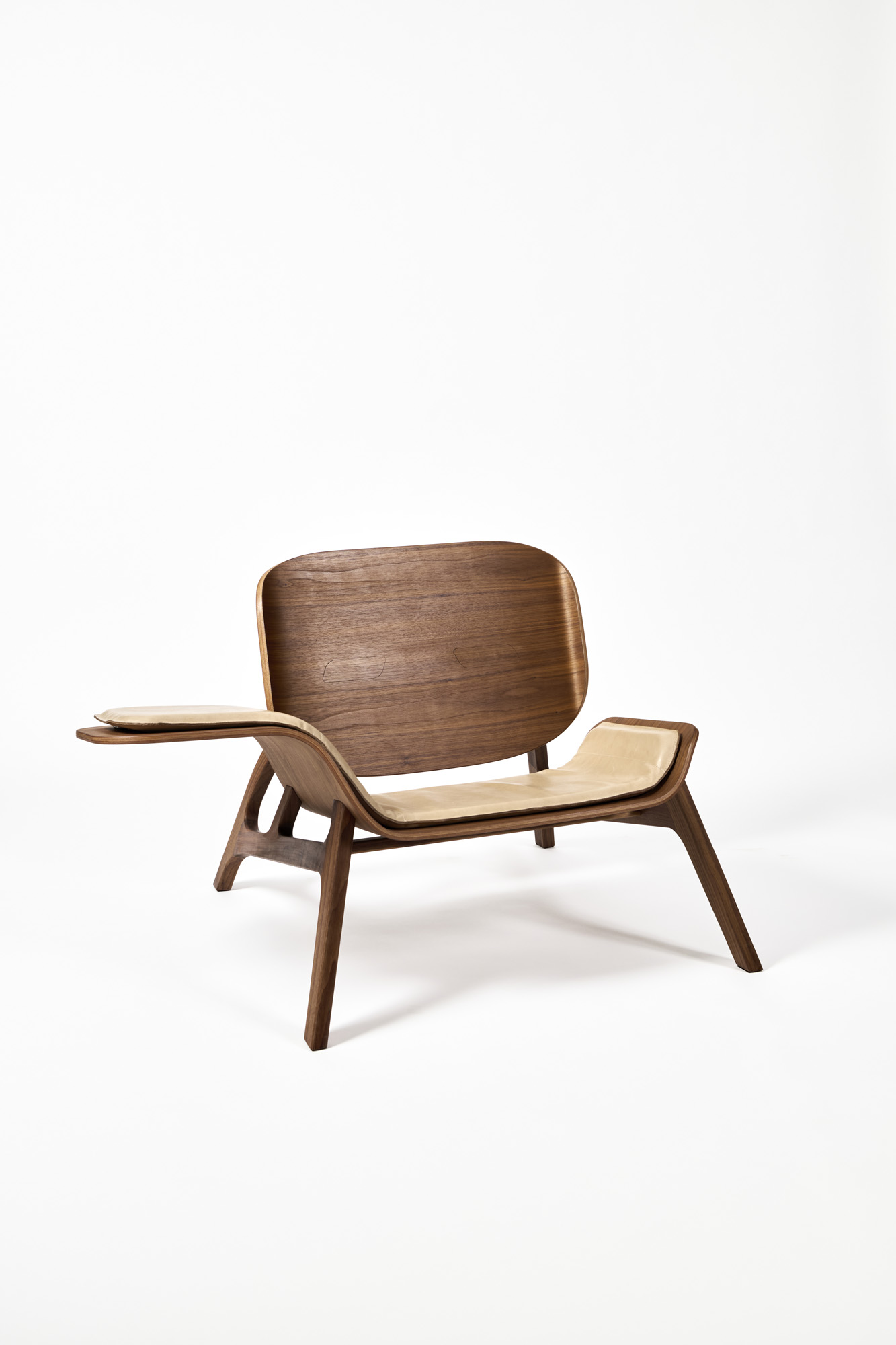 ‘De Esse Chair wordt tijdens Milan Design Week gepresenteerd als een eigentijds ontwerp waarin massief notenhout, digitale precisie en Nederlands vakmanschap samenkomen. Het ontwerp is ontstaan vanuit een eenvoudige ambitie: het maken van een zo mooi mogelijke stoel, met zorgvuldige aandacht voor vorm, materiaal en gebruik. Digitaal tekenen en CNC-frezen zijn bewust omarmd als onderdeel van het ontwerp- en maakproces, in combinatie met ambachtelijke afwerking. Een natuurlijke olieafwerking behoudt het karakter en de textuur van het hout. Het geïntegreerde tafeltje voegt een multifunctioneel aspect toe, zonder de rust en openheid van het ontwerp te verstoren. Heldere lijnen en een open structuur geven de stoel een lichte aanwezigheid in de ruimte. De Esse Chair is opgevat als een tijdloos, functioneel object dat meerdere rollen kan aannemen. Daarmee nodigt het ontwerp uit tot gebruik én tot reflectie op wat een stoel kan zijn.’